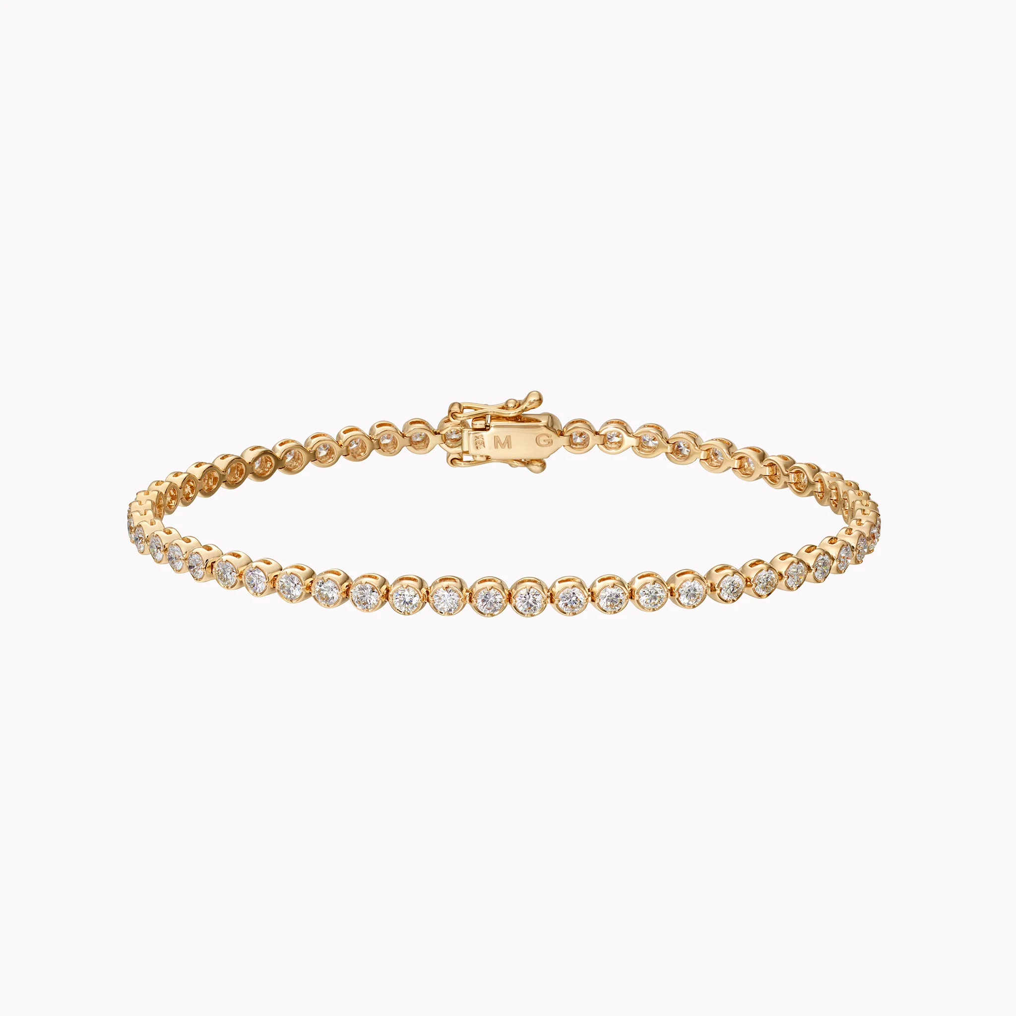 Tennis bracelet featuring round brilliant cut diamonds bezel set in 18K white, yellow, or rose gold. This piece is a playful yet polished update to the iconic tennis bracelet. This contemporary silhouette easily transitions from day to night and pairs with any stack. Elevate your everyday style with this instant staple piece.