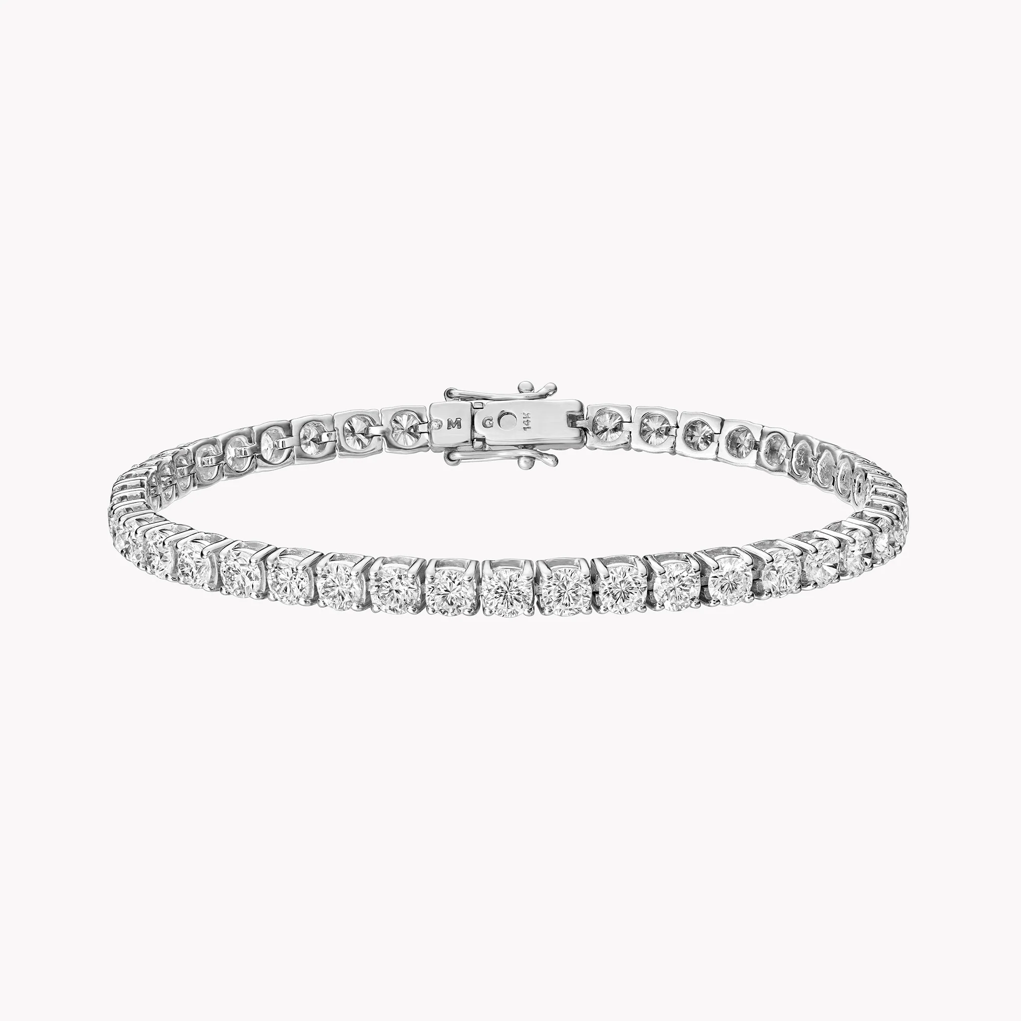 A Material Good staple. This tennis bracelet is prong set with 40 round brilliant cut diamonds, weighing approximately 0.25 carats each. This stunning tennis bracelet hosts diamonds handcrafted in 18K yellow, white or rose gold. Our tennis bracelets feature a fluid construction, ensuring a comfortable and effortless fit. Wear this modern classic alone, or layer in with your current repertoire.Â