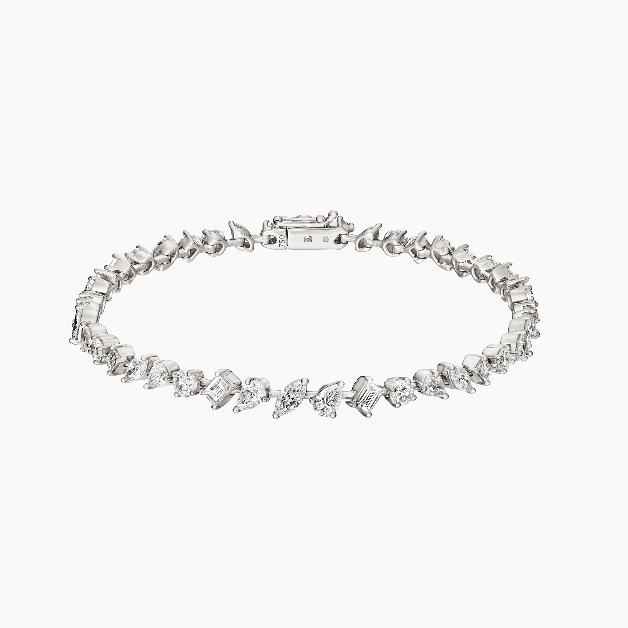 Our signature diamond bracelet with fancy shape diamonds mounted in 18K white, yellow or rose gold.