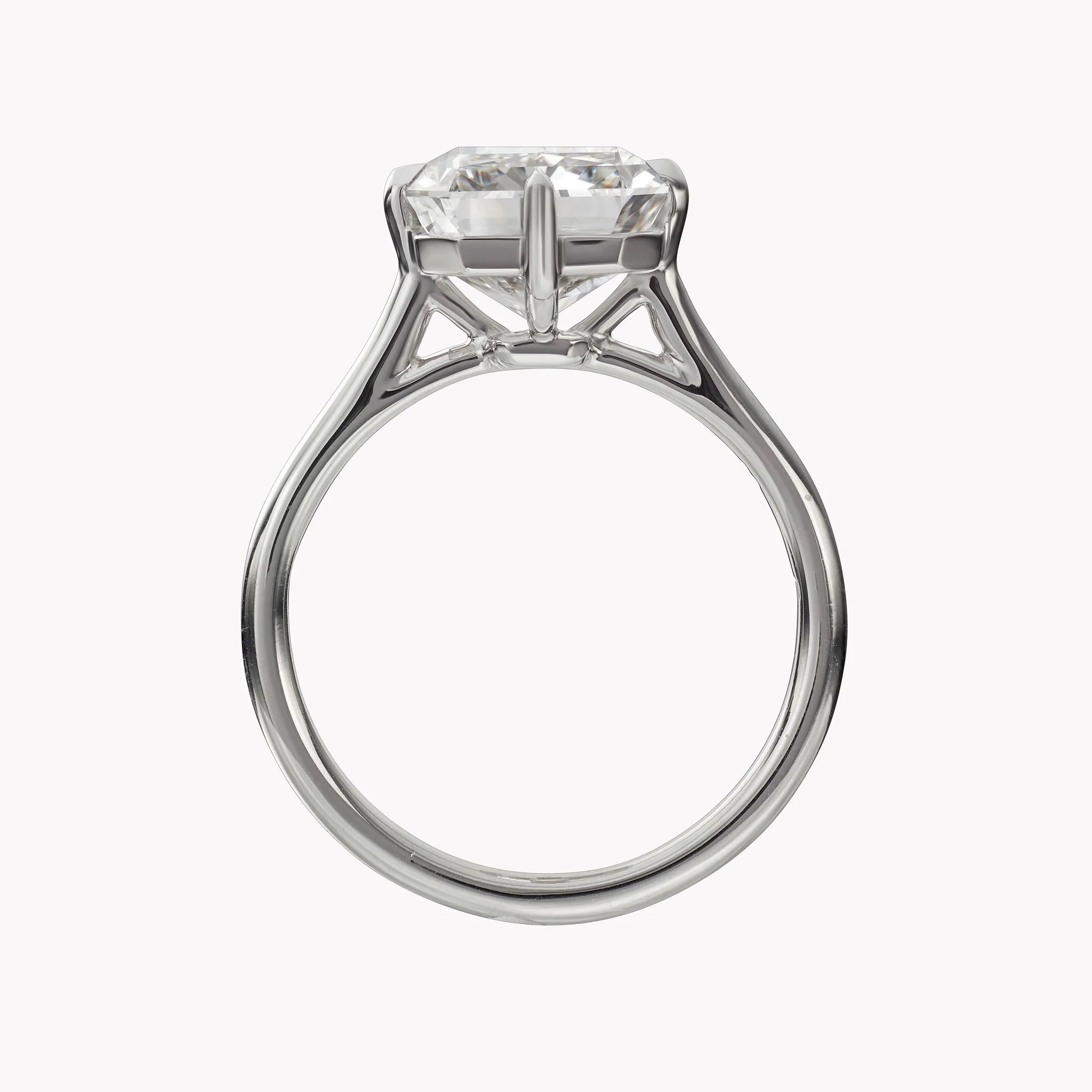This stunning radiant cut diamond is set in a handmade compass set four prong platinum solitaire mounting to accentuate its perfect proportions