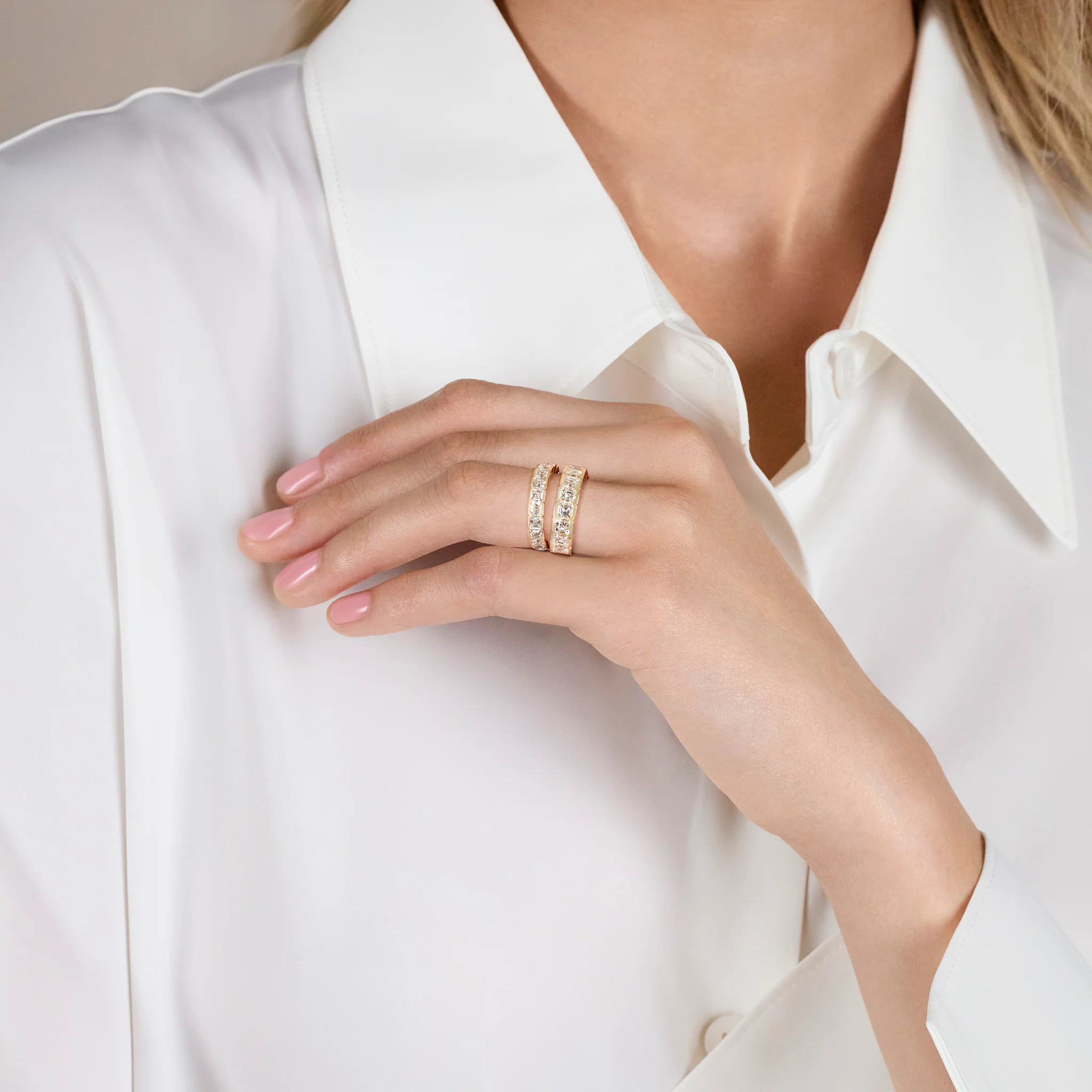 The Alexa Eternity Band showcases asscher cut diamonds set in 18K white, yellow or 14K rose gold. Vintage glam meets timeless elegance with this stunning showcase of glimmering, bezel set diamonds. Crafted by hand, this deco-inspired piece makes a refined addition to any stack, or a gorgeous statement as a wedding band.